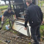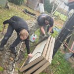 Eine Gruppe widmete sich den alten Tischen, die schon länger auf ihre Entsorgung warteten. Mit viel Einsatz wurden Holz- und Metallteile voneinander getrennt, damit alles fachgerecht entsorgt werden kann.