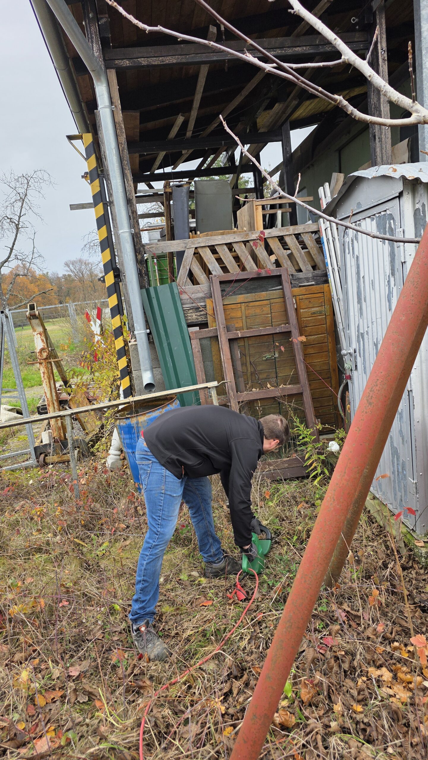 Eine dritte Gruppe kümmerte sich um das anstehende Winterthema: Wasserleitungen. Da die Temperaturen inzwischen unter den Gefrierpunkt fallen, mussten wir die Leitungen entleeren, um Frostschäden zu vermeiden. Mit Hilfe eines Kompressors wurden die Leitungen sorgfältig ausgeblasen und winterfest gemacht.