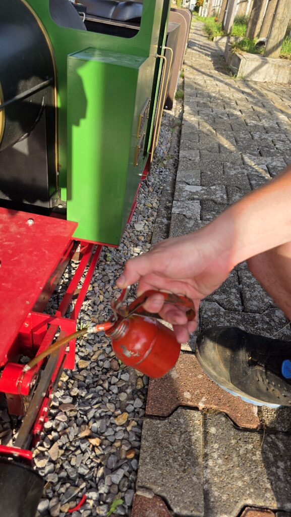 In einer gemeinschaftlichen Mittagspause stärkten sich alle Helfer, bevor es an die Vorbereitungen für den Fahrbetrieb ging. Dazu wurde unsere Lok „Mary“ aufgerüstet, abgeschmiert und für den Einsatz fertiggemacht.