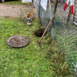 Nachdem am vergangenen Samstag (22.11.2025) eine große Eichenwurzel unter körperlich anstrengendem Einsatz entfernt worden war, standen nun Erdarbeiten an. Die Fläche wird vorbereitet, um dort ein Plato zu errichten, auf dem später eine Modellmühle ihren Platz finden soll – ein zukünftiges Highlight unserer Gartenbahn.