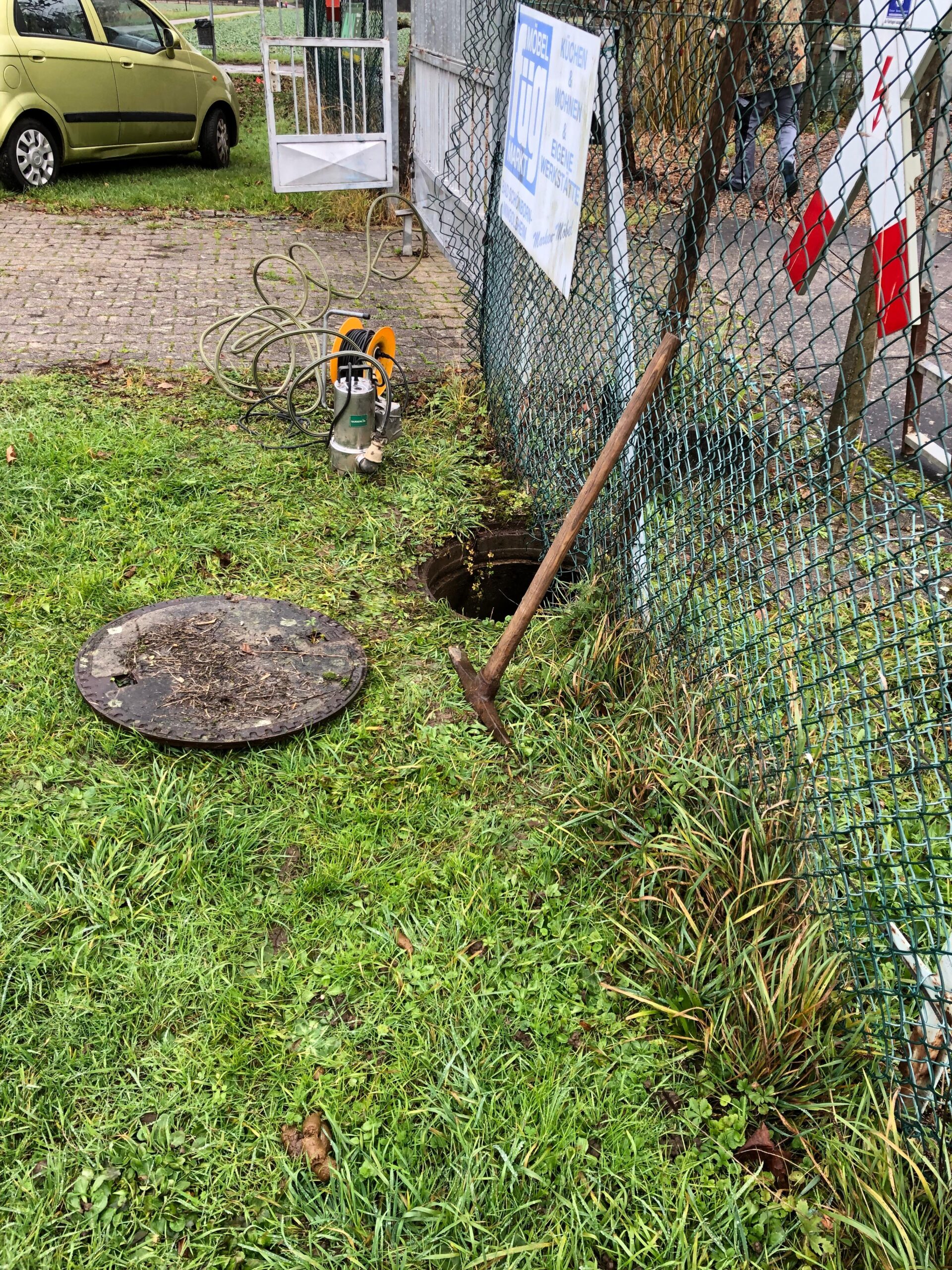 Parallel dazu stand eine weitere Pflichtaufgabe auf dem Programm: das Ablesen unserer Zählerstände. Diese befinden sich bei uns in einem Schacht, der – durch die Witterung bedingt – zunächst ausgepumpt werden musste, bevor wir Zugang erhielten und die Wasserzähler kontrollieren konnten.